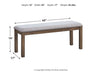 This upholstered dining bench elevates the art of casual rustic style. With a distressed nutmeg finish, antiqued nailhead trim and textured polyester fabric, this upholstered dining bench entices with warmth and earthy elegance. Cushioned seat accommodates lingering meals enjoyed in comfort.