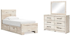 Lawroy Twin Panel Bed with Storage, Dresser and Mirror