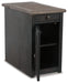 | Details | Made of solid and engineered wood and veneers, Dark bronze-tone hardware, 1 door; 1 fixed shelf, Pull-out tray with 2 cup holders, AC power supply with 2 USB charging ports, Assembly required | |